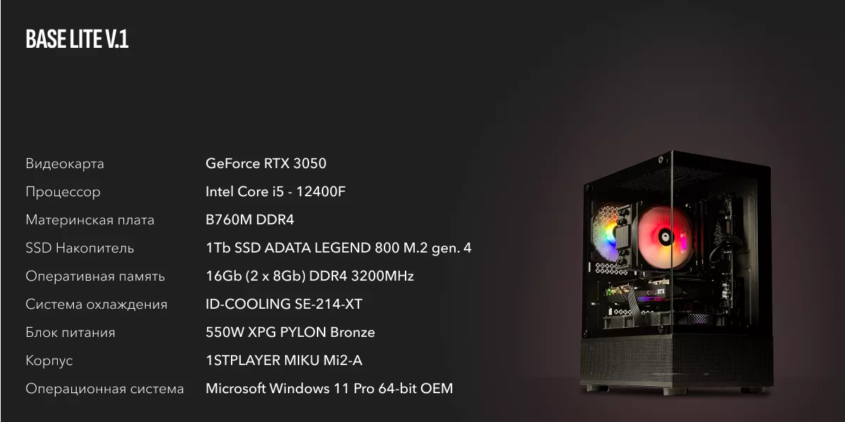 За графику отвечает видеокарта GeForce RTX 3050 – это минимальный уровень для комфортной игры в новинки игр при средних настройках в FullHD. Игровой ПК с такой картой также отлично подходит для онлайн-игр, правда, киберспортивные 144+ FPS будут доступны не во всех проектах. Если RT ядра для трассировки лучей RTX 3050 не так важны, тензорные ядра имеют решающее значение при получении стабильных 60 FPS в требовательных играх. Технология масштабирования DLSS позволит повысить производительность на 15-25% процентов практически без потери качества.