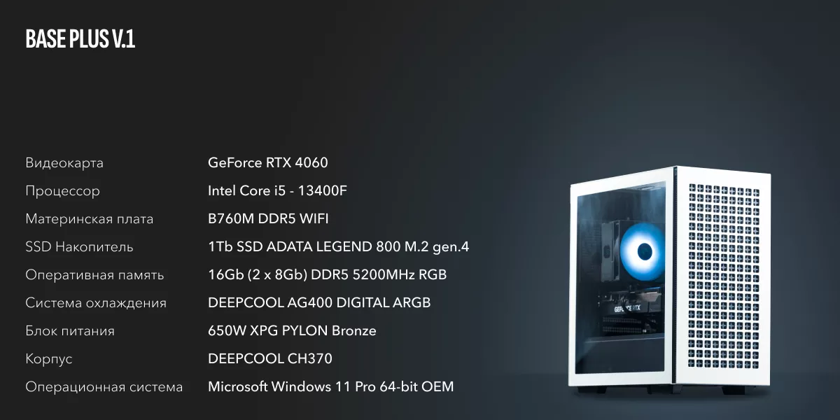 Процессор Intel Core i5-13400F — это оптимальный вариант с заделом на будущее. Он имеет 6 производительных ядер с частотой до 4.6 ГГц и 4 энергоэффективных ядра, что в сумме дает 16 потоков. С учётом высокой производительности на ядро, вы можете рассчитывать на то, что CPU справится с видеокартой RTX 4060 и даже останется запас под апгрейд.