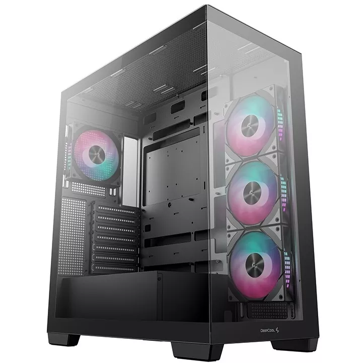 Продуманный корпус DeepCool CH560 для ПК полюбился и сборщикам, и пользователям. Установка комплектующих и прокладка кабелей хорошо продумана и не занимает много времени, имеется даже держатель для видеокарты. Для владельцев корпуса плюсом станет простая чистка от пыли, фильтры снимаются одним движением, а боковая панель фиксируется на мощных магнитах и легко снимается. Комплектные вентиляторы имеют настраиваемую ARGB подсветку и работают очень тихо.