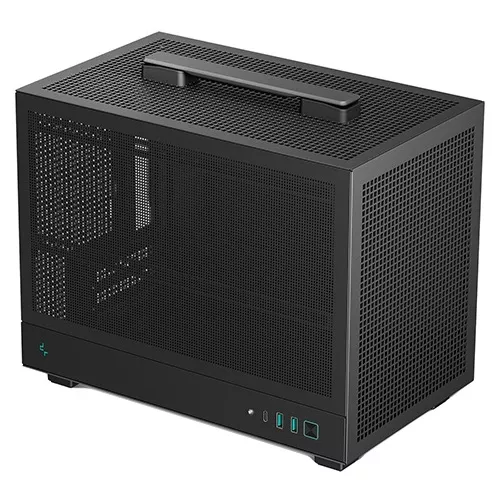 Сборка в компьютерном корпусе Deepcool CH160 MESH, несмотря на его компактные размеры может включить практически любые комплектующие, за исключением материнской платы, она должна быть формата m-ITX. Процессорный кулер может иметь высоту до 170 мм, а видеокарта длину до 305 мм, занимая при этом три слота. Иными словами, даже связка из Core i7 и RTX 4080 поместится и будет работать без перегрева. Вопрос с охлаждением решен радикально, все стенки корпуса выполнены из перфорированного металла.