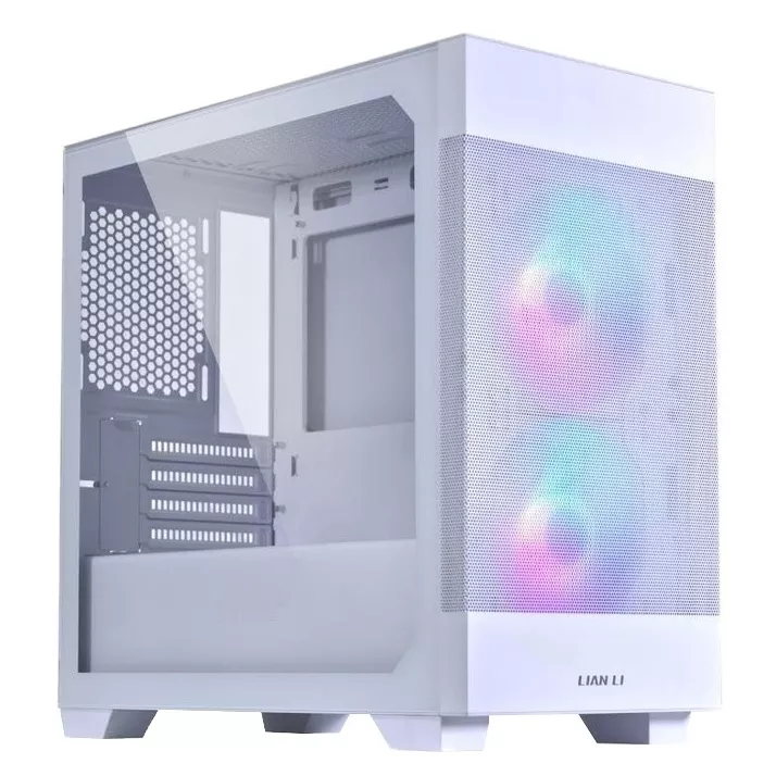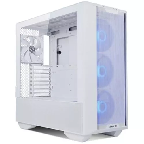 Корпус LIAN LI Lancool 216 White RGB имеет множество необычных решений, повышающих удобство сборки и использования. Верхняя рамка съемная, что позволяет установить СЖО вне корпуса. Панель с передними портами может быть расположена как сверху, так и сбоку. И даже видеокарта может быть установлена вертикально, причем в этом случае появляется посадочное место для вентилятора снаружи корпуса для лучшего отвода тепла от карты.