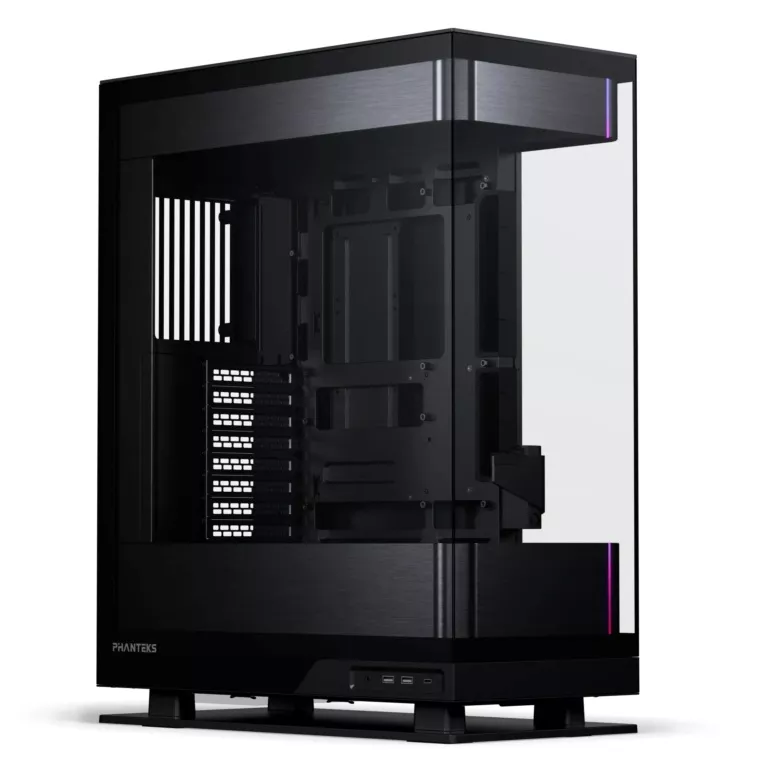 - Ключевые особенности: боковая и передняя панели из закаленного стекла, несколько конфигураций корпуса, возможность вертикальной установки видеокарты, перемещаемая панель передних портов, поддержка трех СЖО 420 мм.