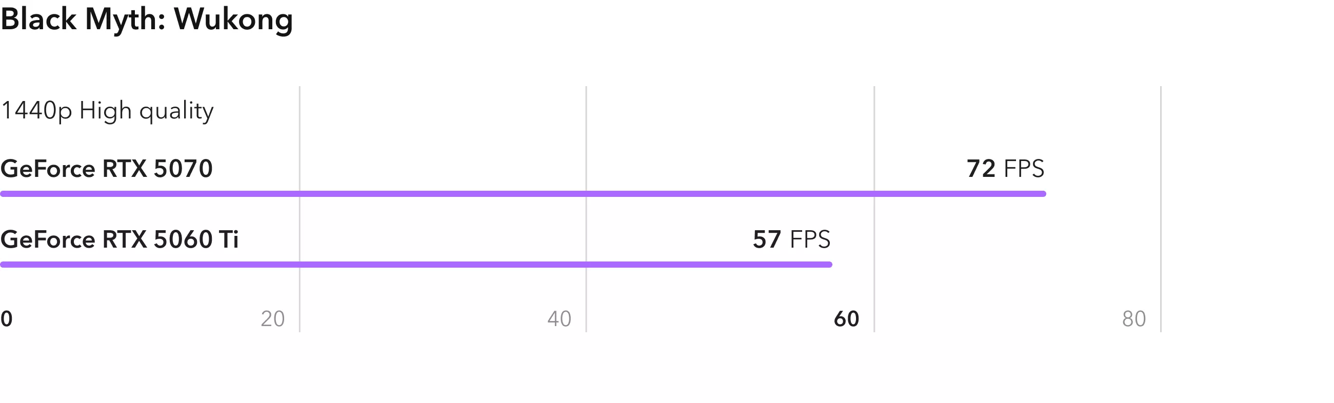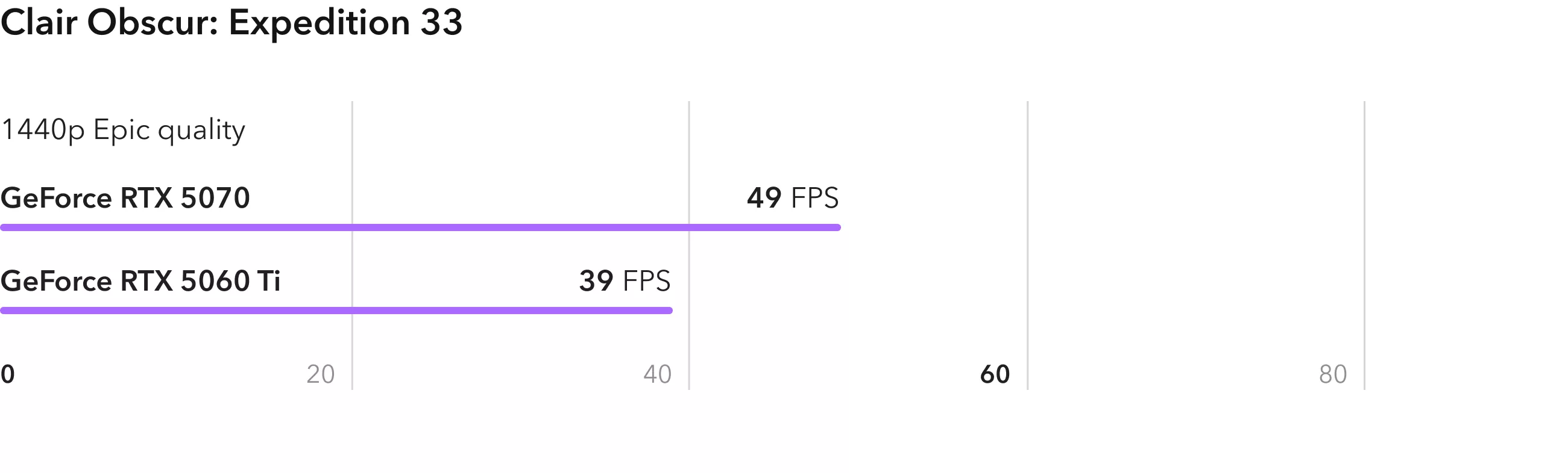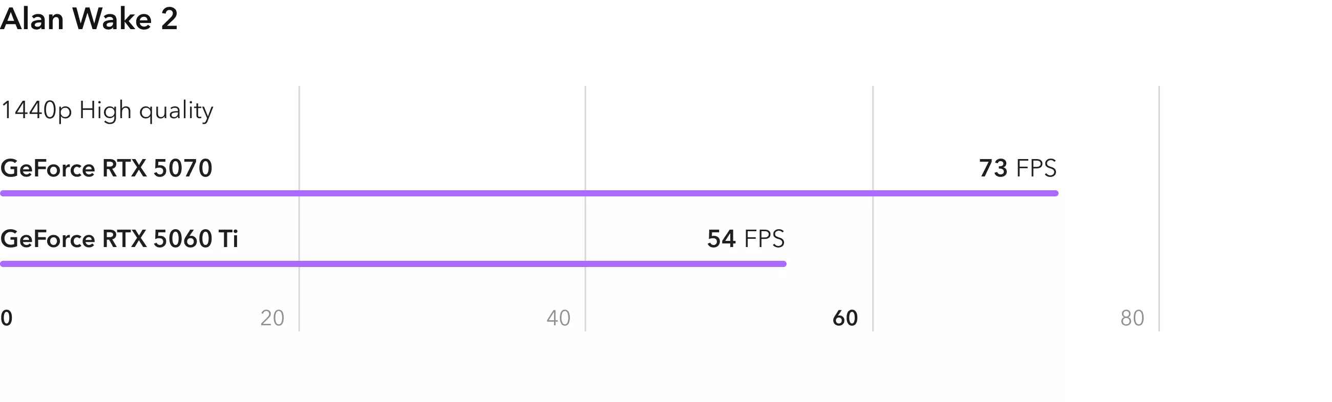 Ролевая игра Baldurs Gate 3 неплохо оптимизирована и показывает реальное различие в вычислительной мощности видеокарт. RTX 5070 опережает младшую модель на 40%. При этом RTX 5060 Ti также справляется с игрой, выдавая в среднем 100 FPS.