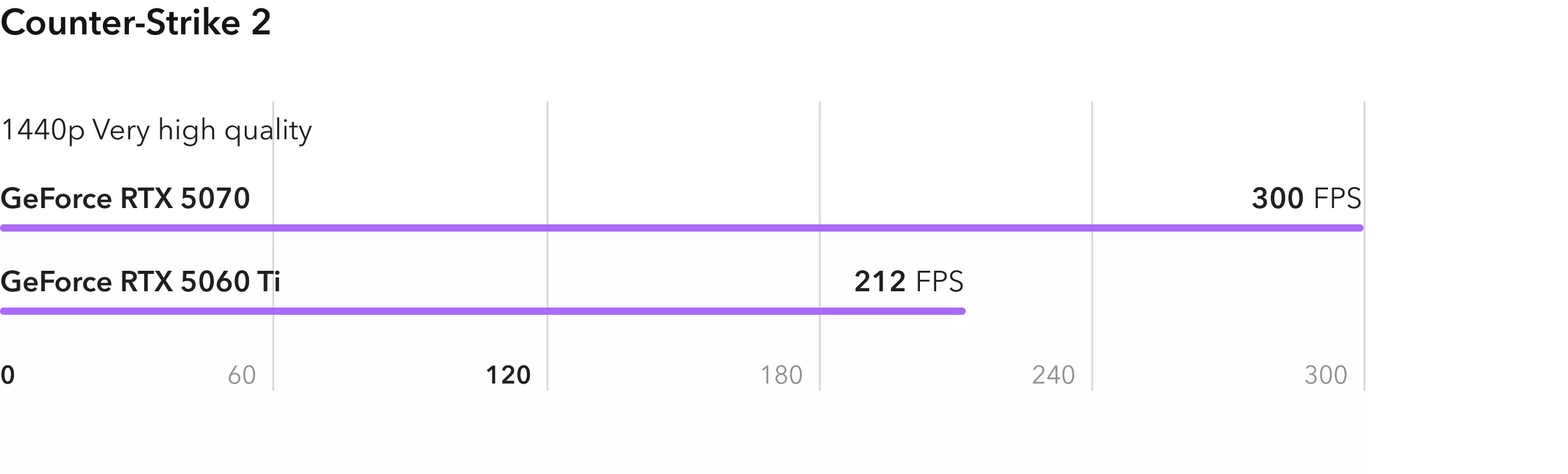 Мультиплеерные шутеры обе карты запускают без проблем. Так, в Counter-Strike 2 вы получите более 200 FPS в разрешении 2К даже на младшей RTX 5060 Ti. RTX 5070 показывает практически идеальное масштабирование с 40% приростом.
