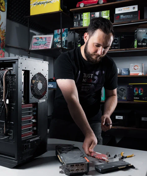 Мы знаем, что хорошо собранный компьютер будет работать безотказно. Все компьютеры MAN-MADE проходят обслуживание у нас абсолютно бесплатно. В программу обслуживания входит: профессиональная чистка от пыли, замена термоинтерфейсов и профилактическая диагностика всех систем.
