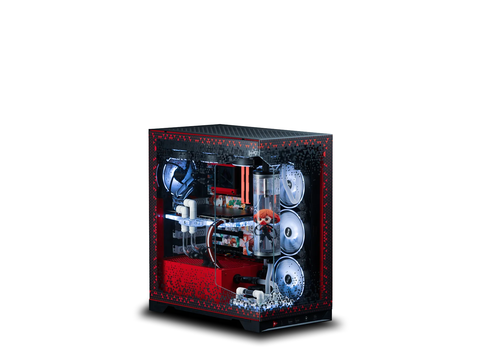 Участники конкурса получили необходимые компоненты от компании XPG, такие как корпуса, блоки питания, системы охлаждения и другие аксессуары. Мы должны были использовать эти компоненты для создания уникального дизайна и функционала своего проекта. Мы дополнили билд кастомными закаленные стеклами, покрасили практически все элементы, нанесли УФ-печать на комплектующие.