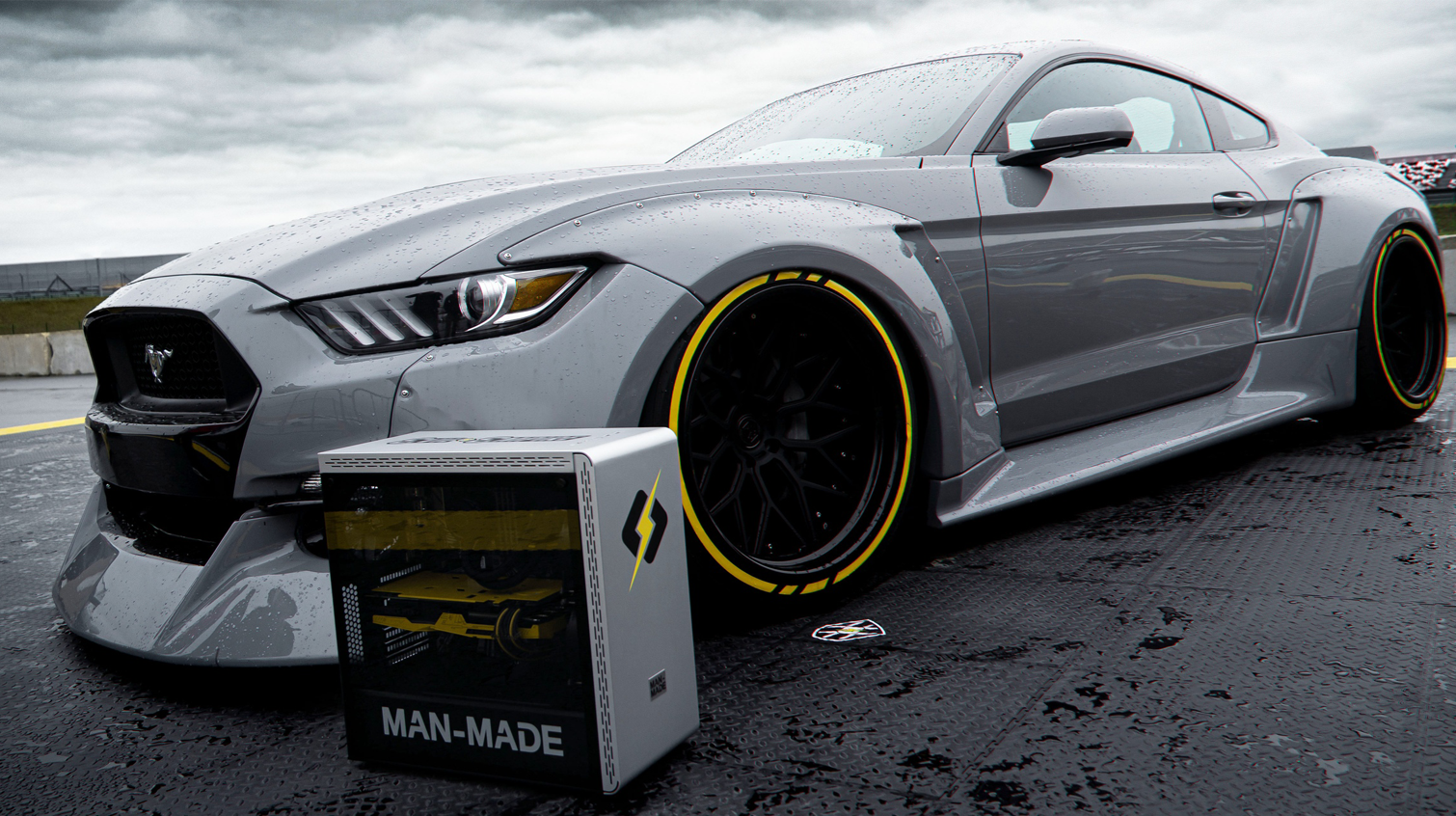 Собирая этот компьютер, мы стремились максимально передать стиль автомобильного проекта Ford Mustang от команды Ишхана. Для этого мы подобрали корпус в цвет автомобиля, покрасили кожух видеокарты и отдельные элементы интерьера, а также установили кастомные кабели чёрного и жёлтого цветов.
