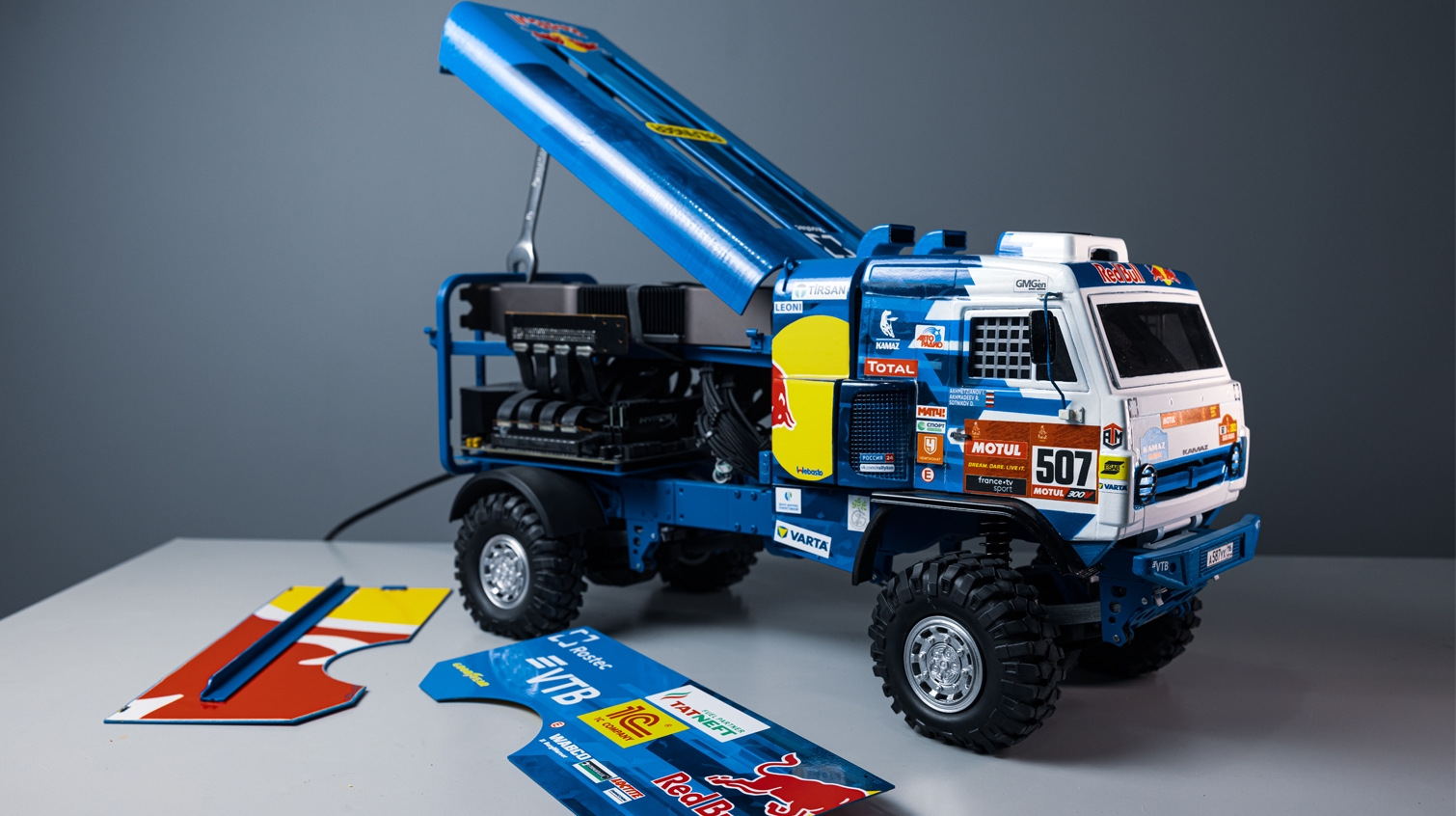 Полностью кастомный корпус с фотографической точностью передающий внешность легендарного пустнынного болида компании КАМАЗ